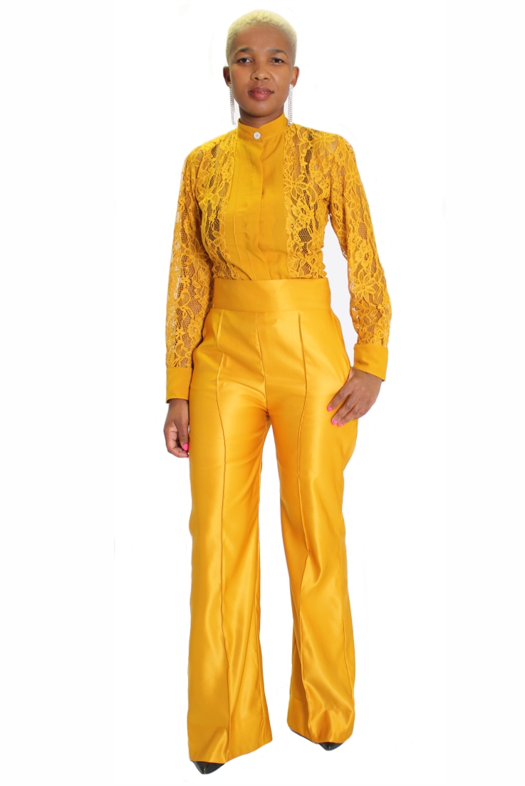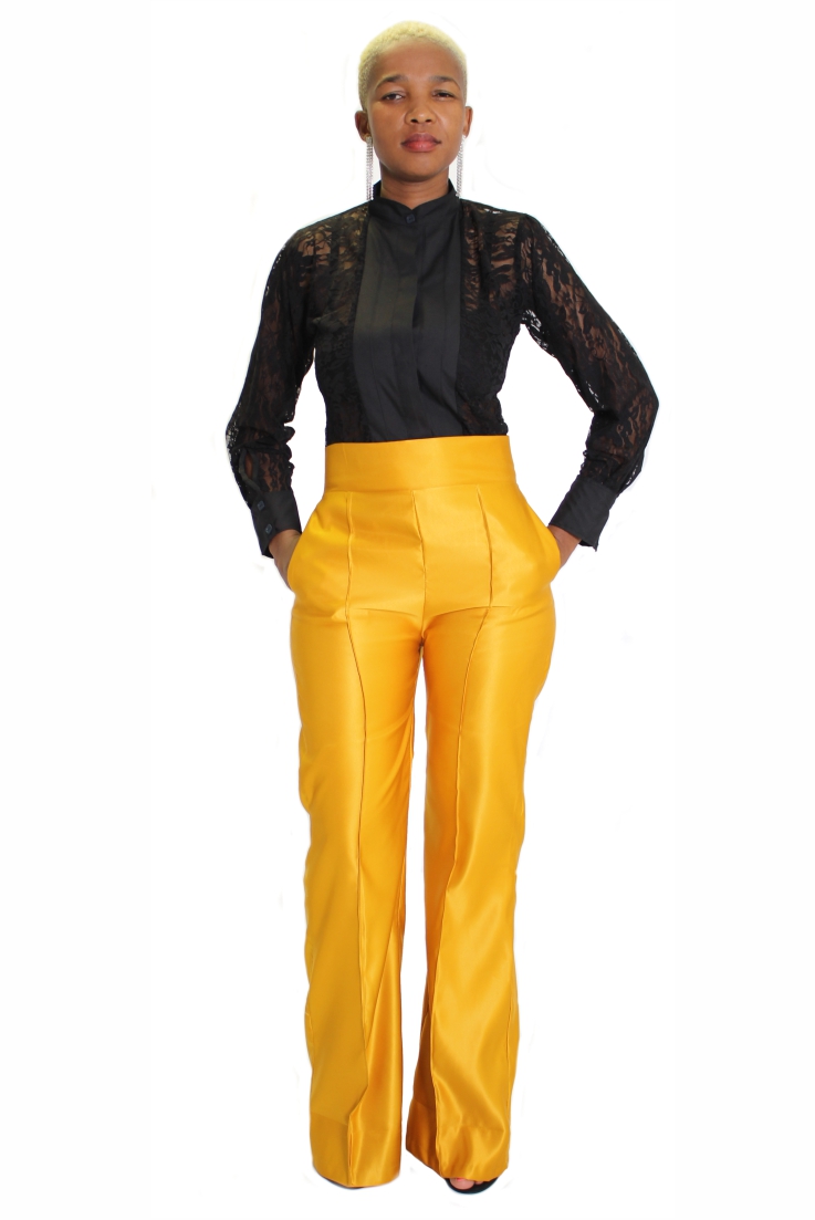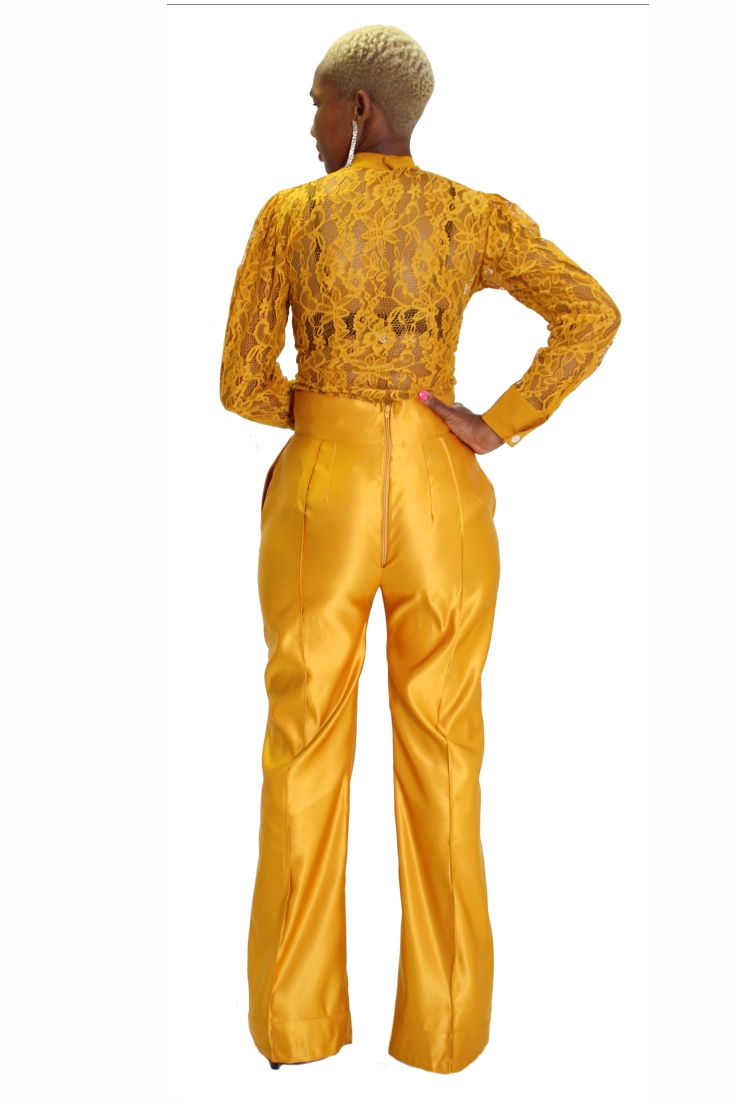 Satin fabric Straight Cut Pants Wide Leg High Waist Pleated Has side pockets Designer cloth 50% Polyester 50% Silk