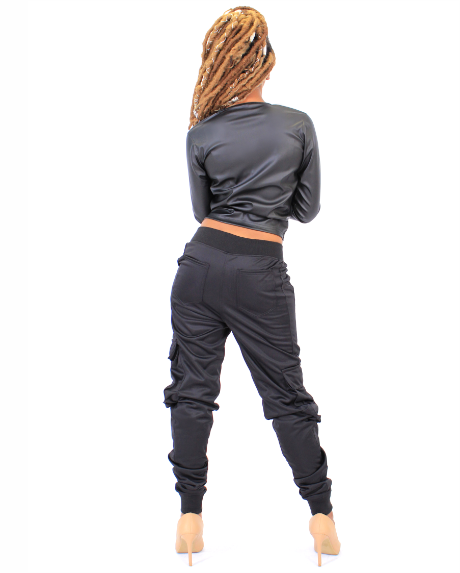 Available In Black. Faux Leather Motor Jacket Front Zip Soft back Stretch 55% Polyester 45% Polyurethane