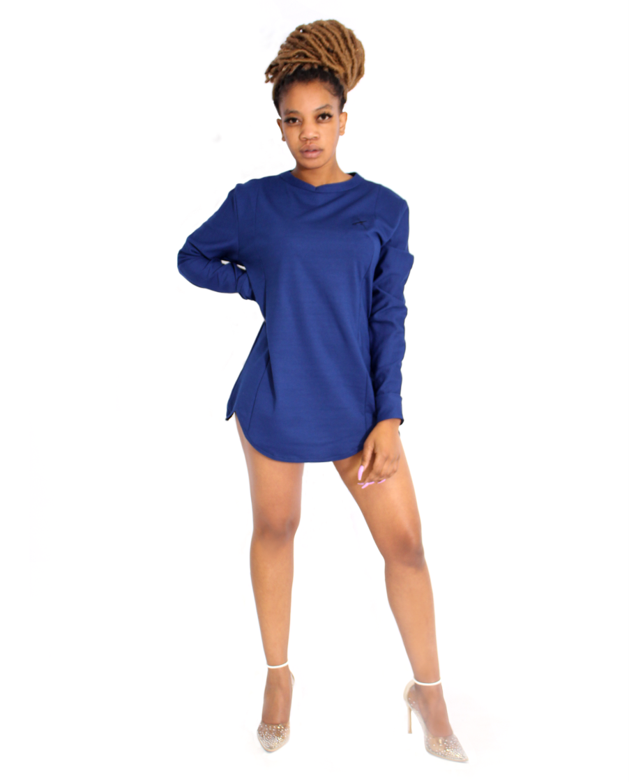 This is a men long sleeve 100% cotton T-shirt worn by Ladies as a short dress. A medium size men T-shirt is worn by a small size model (model size 30) The T-shirt is has a beautiful cut, too beautiful for a man T-shirt.