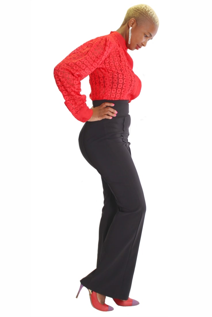 Poly wool fabric Formal pants, Back Zip High Waisted Pant Wide legs Stylish design 50% Polyester 45% Wool 5% Cotton