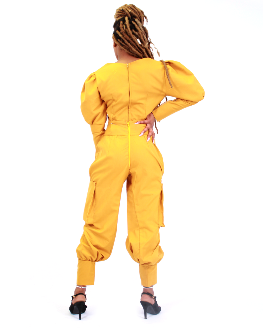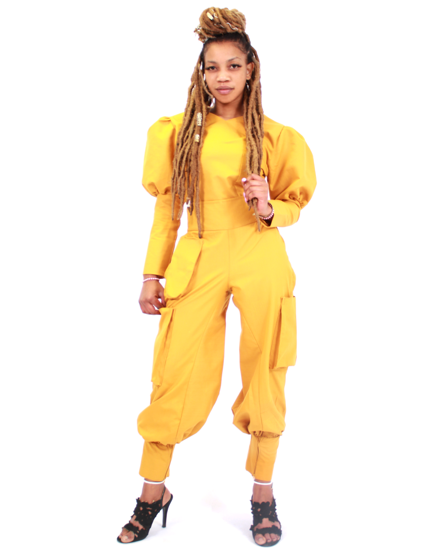 Poly wool fabric Long Sleeves Cargo pants, V-Neck puffed shoulders top Puffed shoulder and wide legs 50% Polyester 45% Wool 5% Cotton